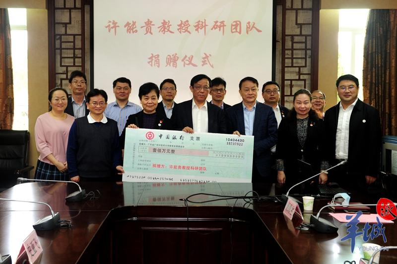 日前,beat365中文官方网站许能贵教授科研团队将学校党委奖励的100万元人民币,全部捐赠给学校教育发展基金会,用于学校新型冠状病毒肺炎疫情防控相关工作。4月10日上午,捐赠仪式在beat365中文官方网站大学城校区举行。