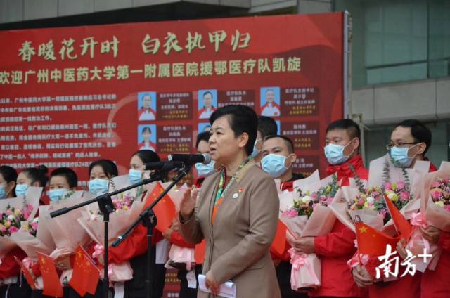 2020年4月3日上午,广东省中医院援助湖北医疗队首批返穂的41名队员在结束了两周的休整后分别回到广州和珠海院区,在广州本部,医院举行了简单而具有意义的欢迎仪式,致敬白衣战士。广东省中医院名誉院长吕玉波、院长陈达灿、党委书记翟理祥等院领导及医护人员代表参加了欢迎仪式。