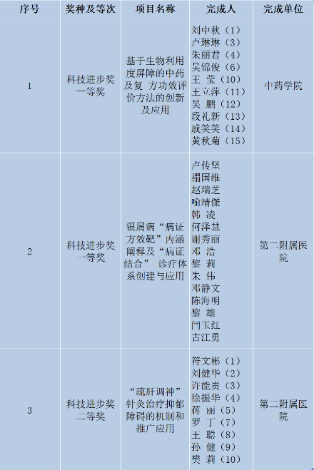 刘中秋教授一等奖项目中,刘中秋教授主持完成的“基于生物利用度屏障的中药及复方功效评价方法的创新及应用”项目,建立创新性中药及复方药效评价理论体系,创新性中药及复方药效评价方法体系,开展创新性应用研究。