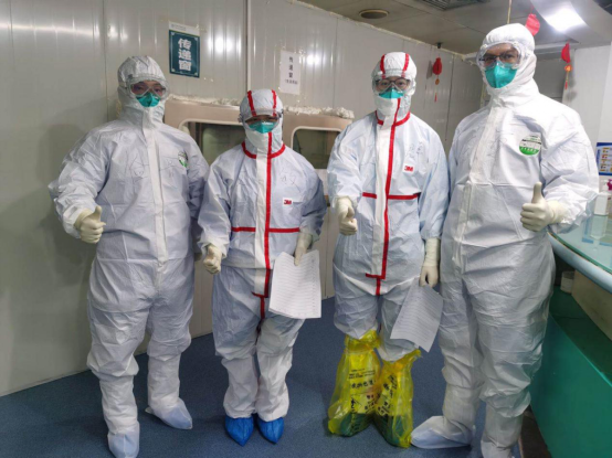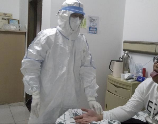 “这和平时诊治病人的样子一模一样,不同的是我们的外面多了一层防护服,但是防护服却掩盖不住老师对诊治病人的热心与专心。”看到邹教授如平时一般带着自己查房,周袁申感慨万千,仿佛回到了学生时代。“我自己都感觉到汗在手臂上打转,而转身看到老师的两个护目镜早已布满了雾水,令我满是敬佩。”