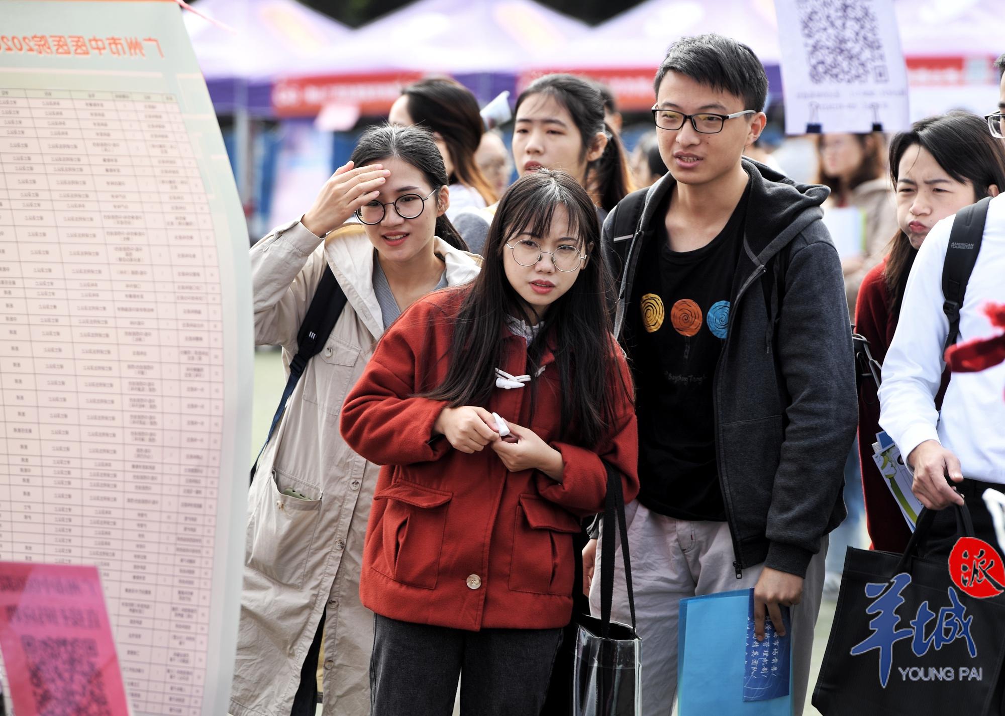 11月28日,广东气温骤降,当天上午,广东省2020届普通高校毕业生中医药学类(含食品、化工)专场供需见面会在beat365中文官方网站大学城校区举行。记者现场看到,降温来得突然,不少毕业生仍穿着单薄的职业套装前来求职,一边排队一边抱紧肩膀抵御冷风。