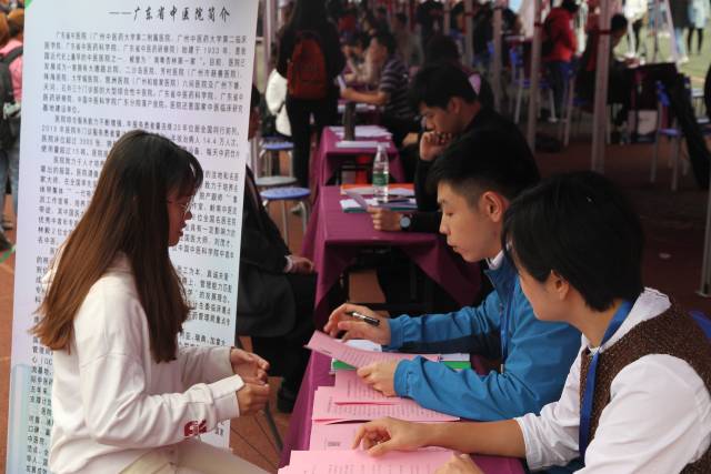 珠三角仍是毕业生的热门选择。在现场,广州、深圳等各大医院或生物医药企业的招聘摊位前排起了长龙。珠三角医院薪资条件普遍较高,部分企业甚至提出了50万年薪的条件,吸引在场大量应聘的毕业生。