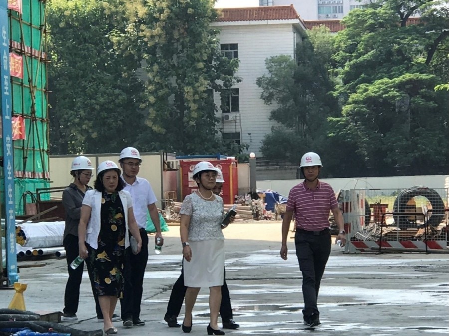 beat365中文官方网站党委在“不忘初心,牢记使命”主题教育中,立行立改,针对正在施工的三元里老校区学生宿舍楼工程,为推进新建学生宿舍楼早日高质量、高标准完工,9月18日下午,党委书记张建华与分管工作的学校副校长潘华峰以及后勤管理处负责人走入工地,进行专项调研和督查。