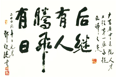 邓铁涛题词贺广东省中医院人才工程第一届高徒出师。