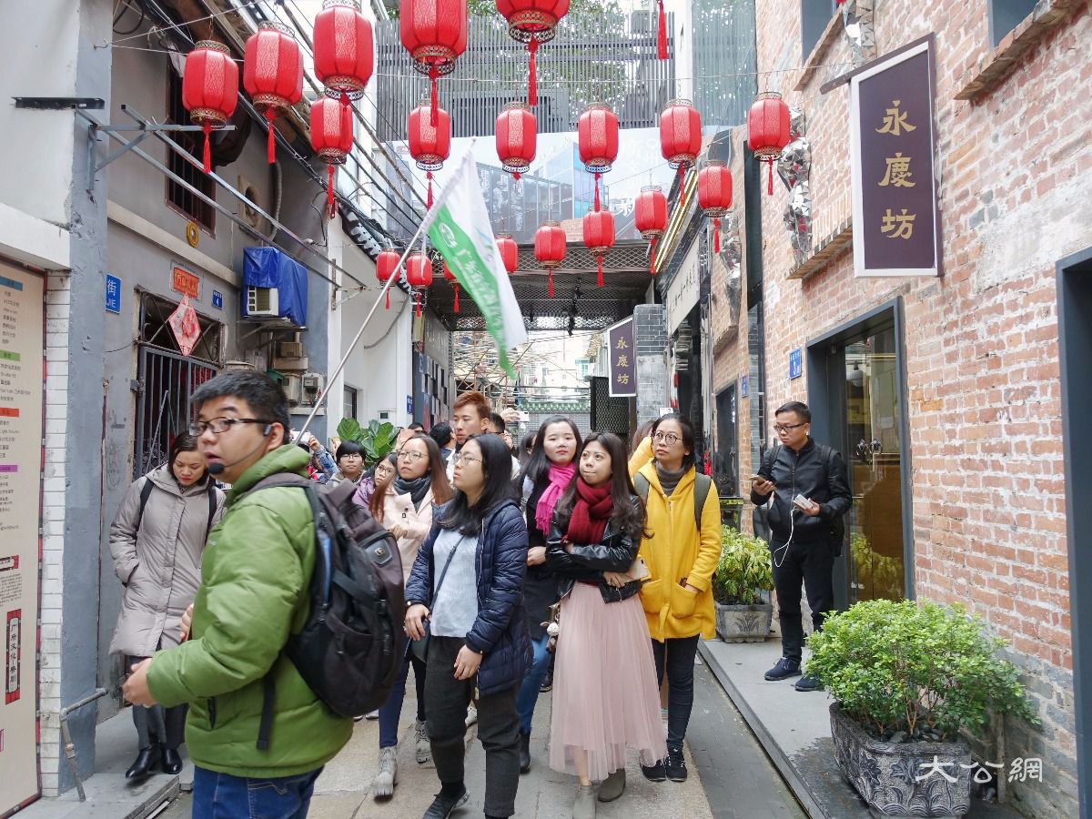 台湾学生在参观保持浓厚广州老西关风情的永庆坊(卢静怡 摄)