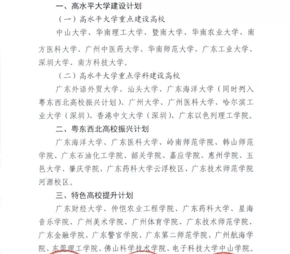 早在2015年4月,广东就在全国较早启动高水平大学建设,并推动高水平理工科大学建设、省市共建本科高校、特色重点学科建设,以超强度建设、超常规投入推动广东高等教育加速发展。