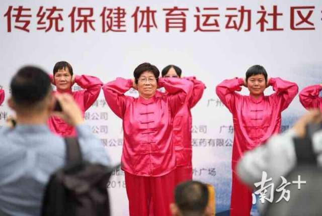 全国名中医、广东省中医院林毅教授现场表演了女性养生导引功。著名气功大师、武术教练、推拿专家郭程湘老师率领团队进行了流派畅气通络功法表演。表演嘉宾还与现场观众进行传统保健养生功法教学互动,向广大市民积极传播传统保健理念,弘扬中医药文化。