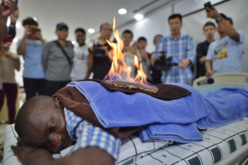 背上起火,留学生却赞不绝口说着“i feel good”。在25日的体验中医传统疗法的活动中,一位非洲留学生就体验到火龙灸的魅力,惊叹中医的博大精深。来自尼日利亚的Johnson是第一次来中国,目前在华南理工大学留学。火龙灸结束后,Jhonson笑着向周围地人举大拇指,为疗法点赞。