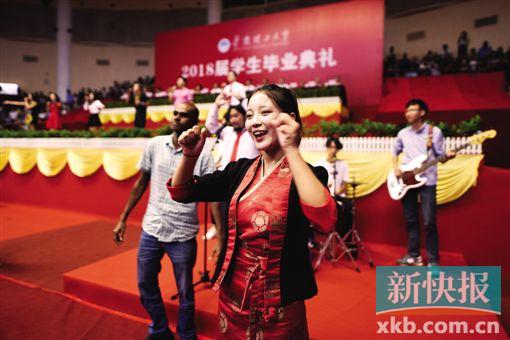 ■华南理工大学2018毕业典礼上,毕业生在表演快闪舞蹈秀。