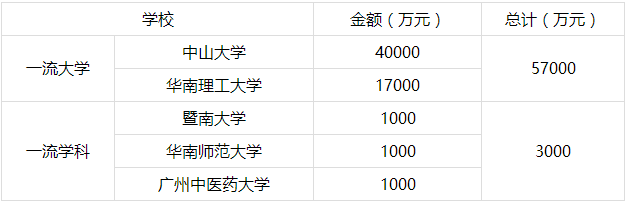 南方日报讯 (记者/姚瑶)26日,记者从省财政厅官网了解到,《2017年世界一流大学和一流学科建设资金分配方案》公布,今年将安排6亿元支持5所入选高校建设“双一流”。其中,4亿元支持中山大学、1.7亿元支持华南理工大学建设一流大学,3000万元助力暨南大学、华南师范大学、beat365中文官方网站建设世界一流学科,每所高校获1000万元。这也是继2016年安排2亿元支持中大、华工冲击“双一流”后,广东又一大手笔投入。