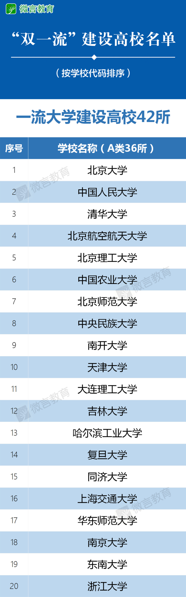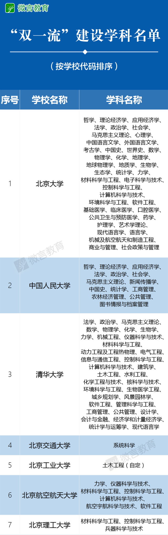 日前,教育部、财政部、国家发展改革委印发《关于公布世界一流大学和一流学科建设高校及建设学科名单的通知》,公布世界一流大学和一流学科(简称“双一流”)建设高校及建设学科名单。