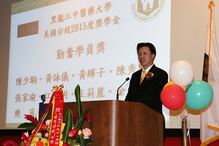 查副总领事在黑龙江中医药大学美国分校2015年度奖学会颁奖晚会上致词