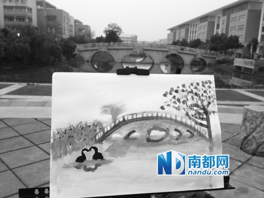 ●大学城杨锦芬的家安在这里,图中是她在大学城广外校区画的一幅画。