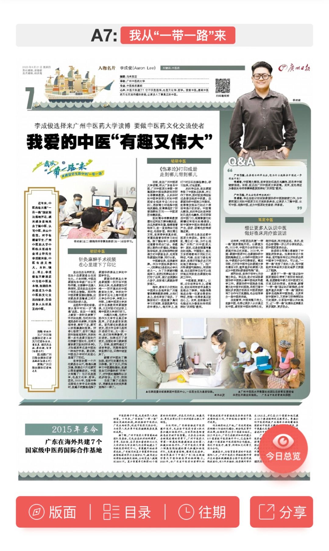 下一条:广州日报:我从“一带一路”来③ | 马来西亚留学生李成俊:我爱的中医“有趣又伟大”