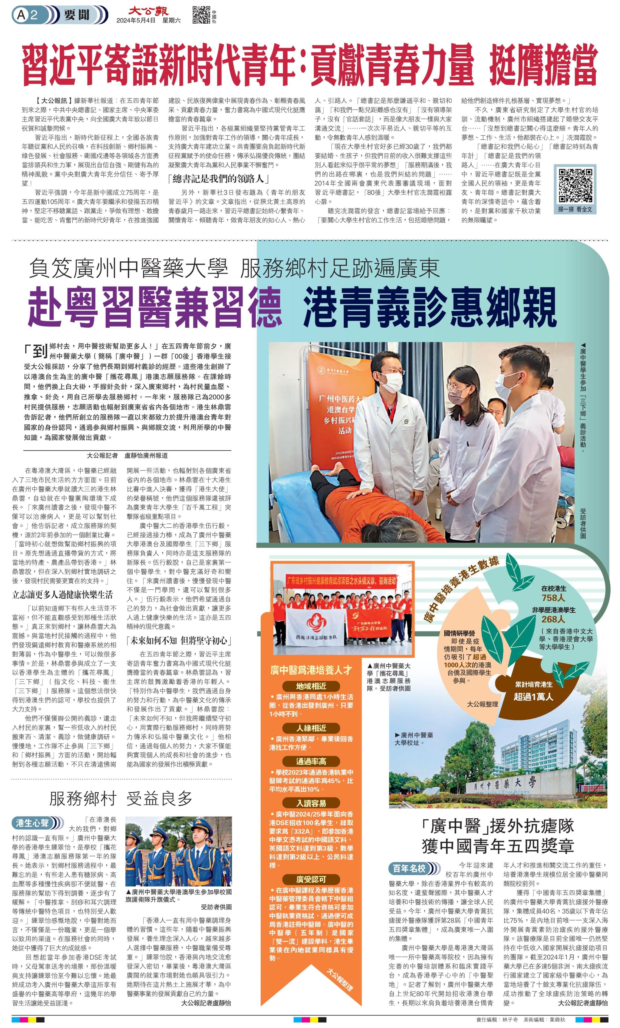 下一条:大公报:百年名校/「廣中醫」援外抗瘧隊 獲中國青年五四獎章