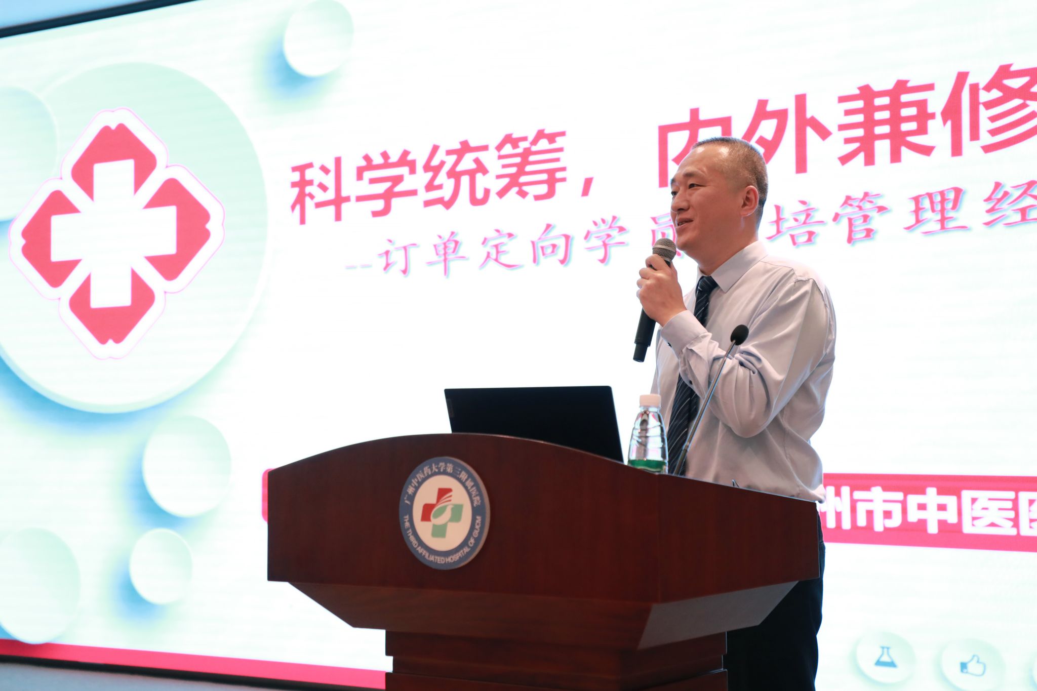 beat365中文官方网站惠州医院(惠州市中医医院)常务副院长刘海全作题为《科学统筹,内外兼修——订单定向学员住培管理经验交流》的规培基地代表报告,针对订单定向学员基层培养整体现状、存在问题进行了分析,阐述了惠州地区探索中医订单定向住培学员培养以及管理的经验做法。