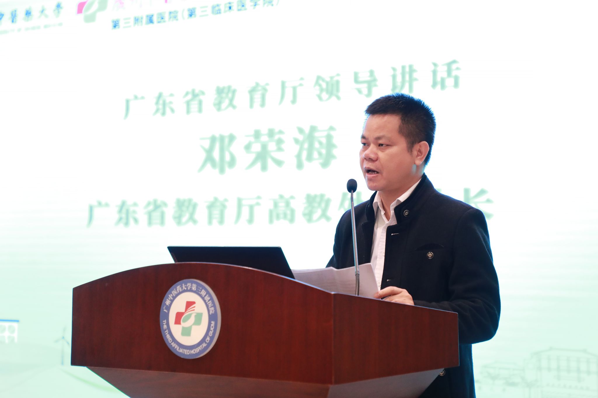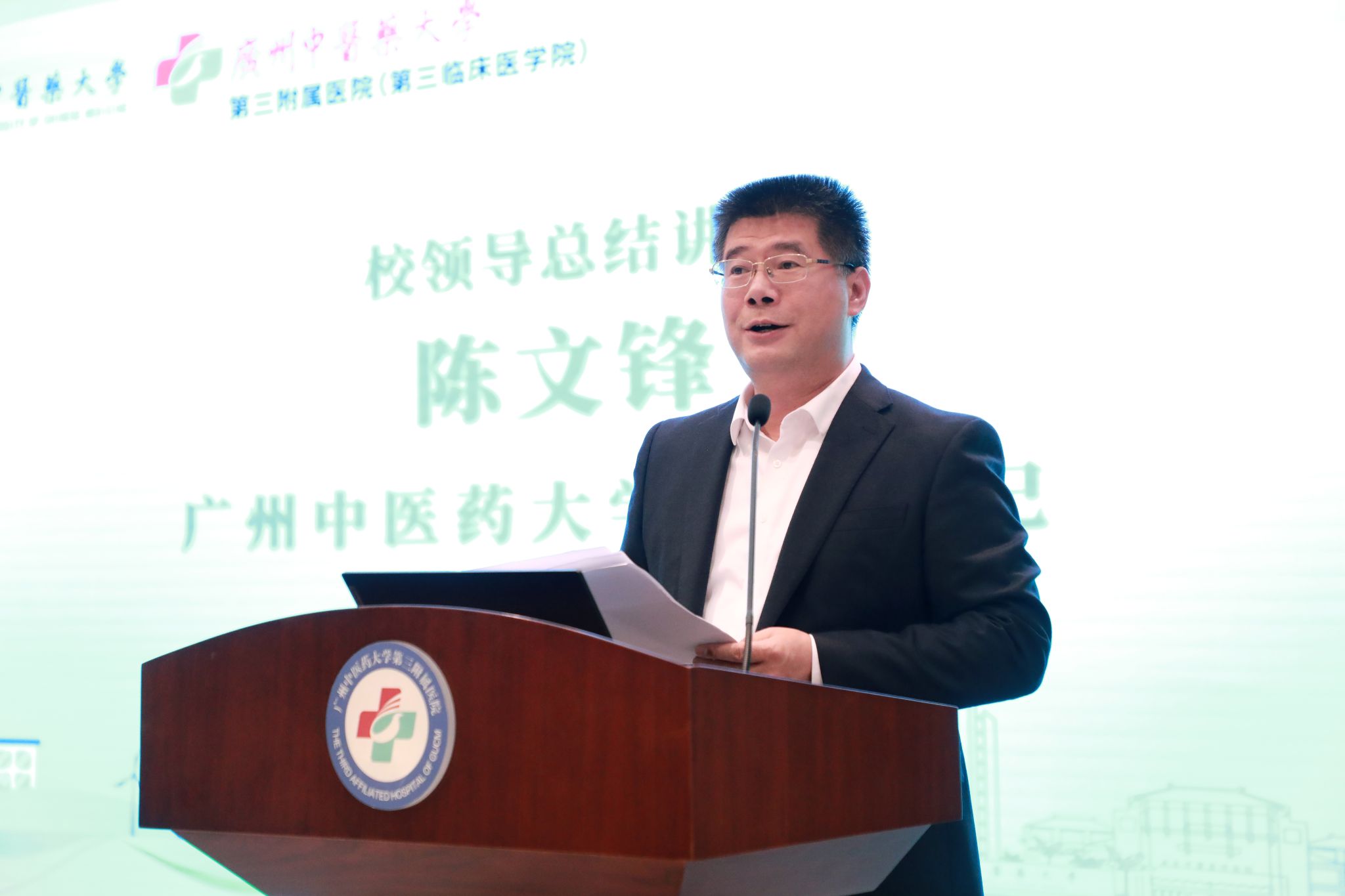 研讨会由beat365中文官方网站主办、beat365中文官方网站第三附属医院(第三临床医学院)承办,分为专题报告、分组讨论和总结报告等环节。广东省中医药局科教处处长伍杰勇,广东省教育厅高教处副处长邓荣海,beat365中文官方网站党委书记陈文锋、党委副书记邱亚洪、副校长刘中秋等出席,省内高校代表、定向地代表、规培基地代表,以及学校相关职能部门、第三附属医院(第三临床医学院)领导班子成员参加了会议。