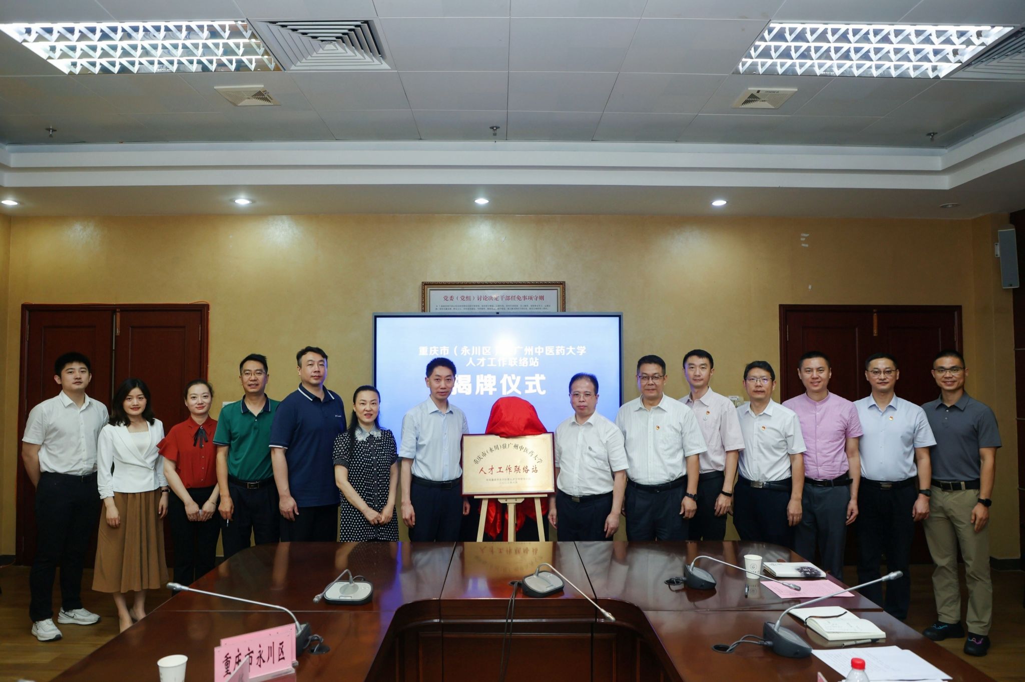 欢迎仪式后,刘中秋、李世红共同为“重庆市(永川区)驻beat365中文官方网站人才工作联络站”进行揭牌。学校研究生院、永川区人社局负责人随后签订《共建beat365中文官方网站研究生(本科)社会实践永川基地协议书》。
